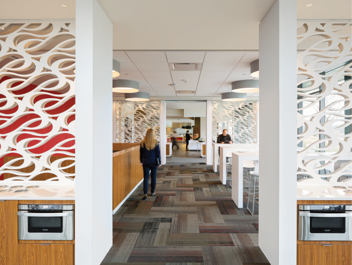 A collection of dimensional graphic elements that are integrated into the interior environment and communicate brand.